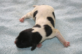 what a long night and day, i havent slept yet but wanted to update the blog so you can all see the babies. paws had 15 pups, we sadly lost 3 a girl and 2 boys and have 12 very healthy and chunky munsters here with a brilliant mum. we have 11 boys and 1 bitch. we had intented to keep a girl to keep paws line going and will have to see how this cutie develops over the weeks but at the moment she is planning to stay here. the 11 boys are lovely and great weights and size. all got vet checked today and all are extremely healthy lively pups. we are so pround of paws and the gang. i have emailed all the people we had on our puppy list explaining the situation and look forward to hearing from you all in your own time when you hae discussed what you would like to do. well enough of me going on here are the babies.